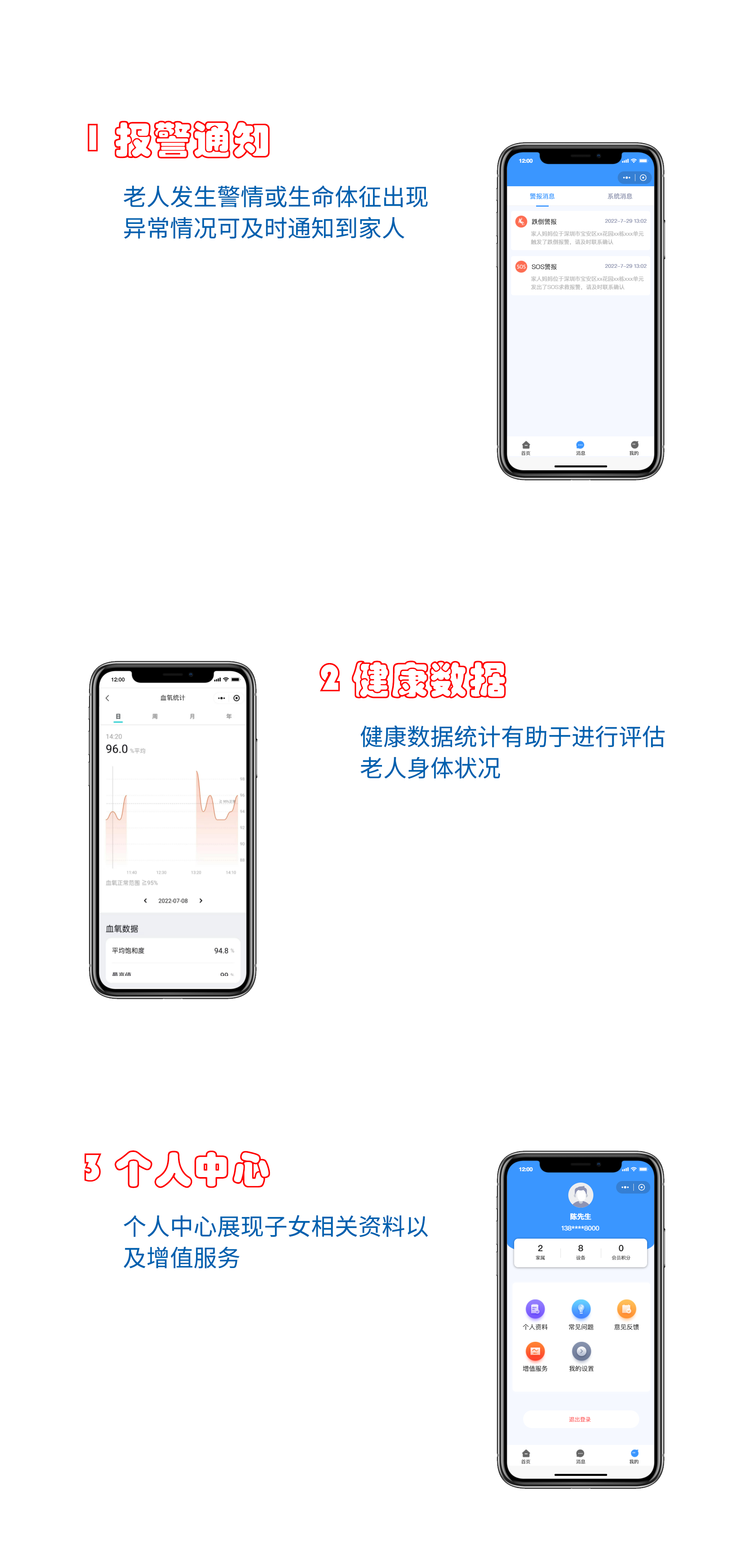 逸高智慧养老是一款针对老人健康体征数据展示小程序,能够对老人生命体征异常进行多维度的呈现,预警、评估、管理、干预服务一体化。